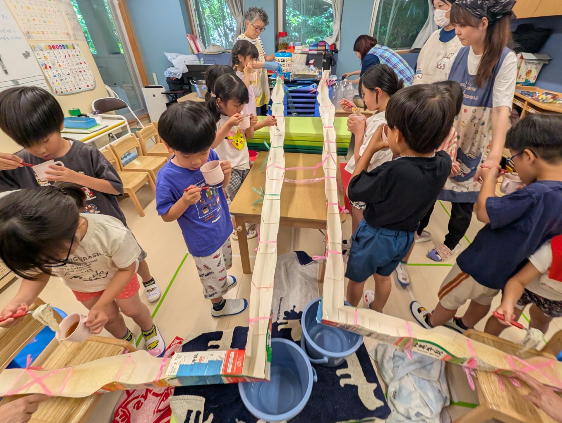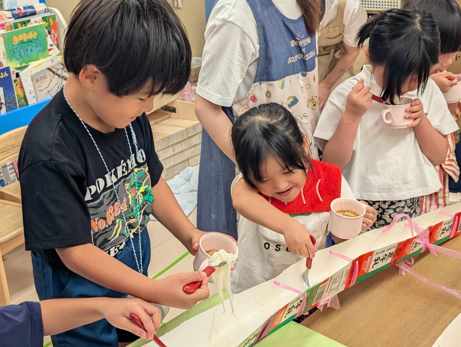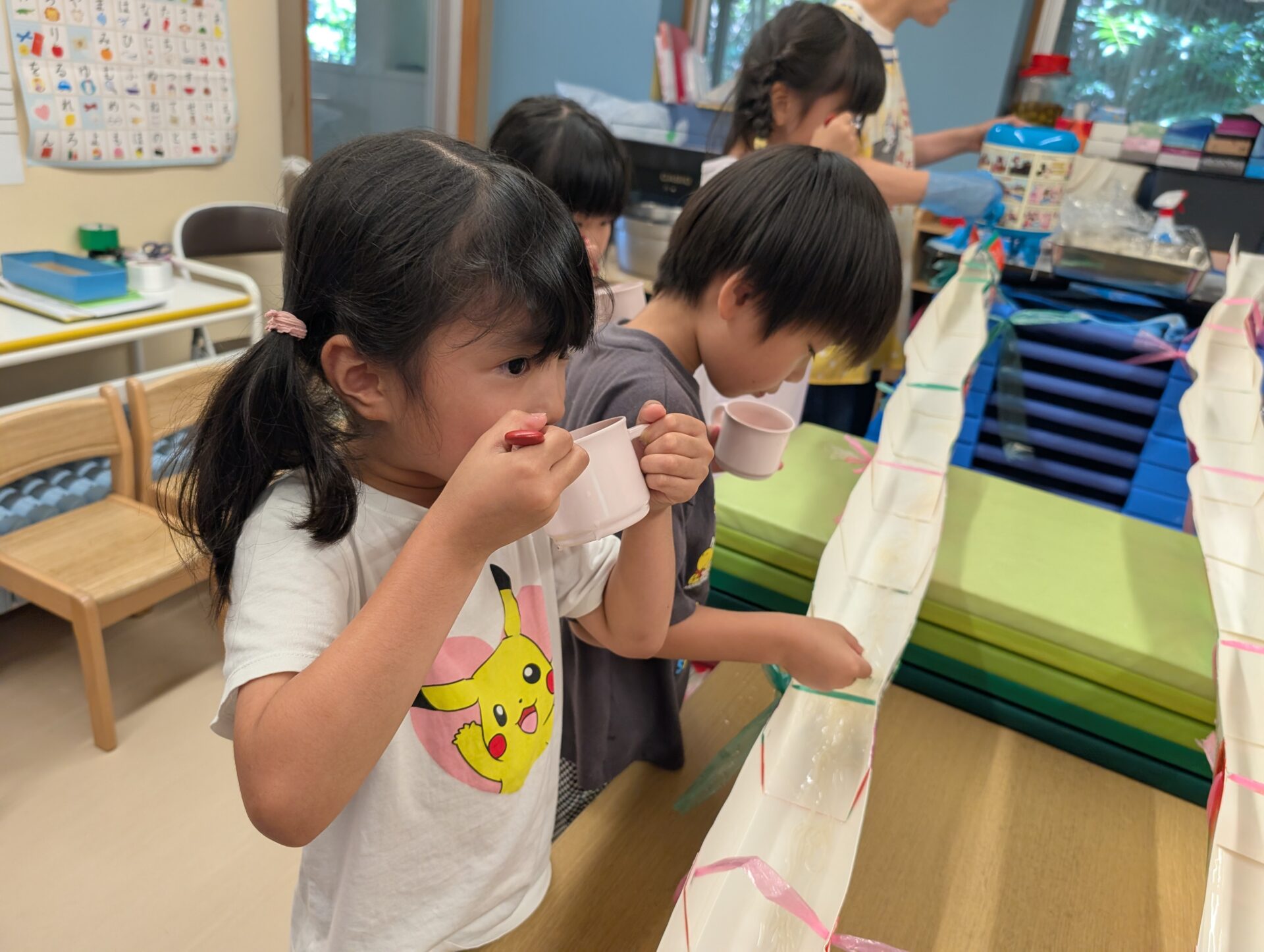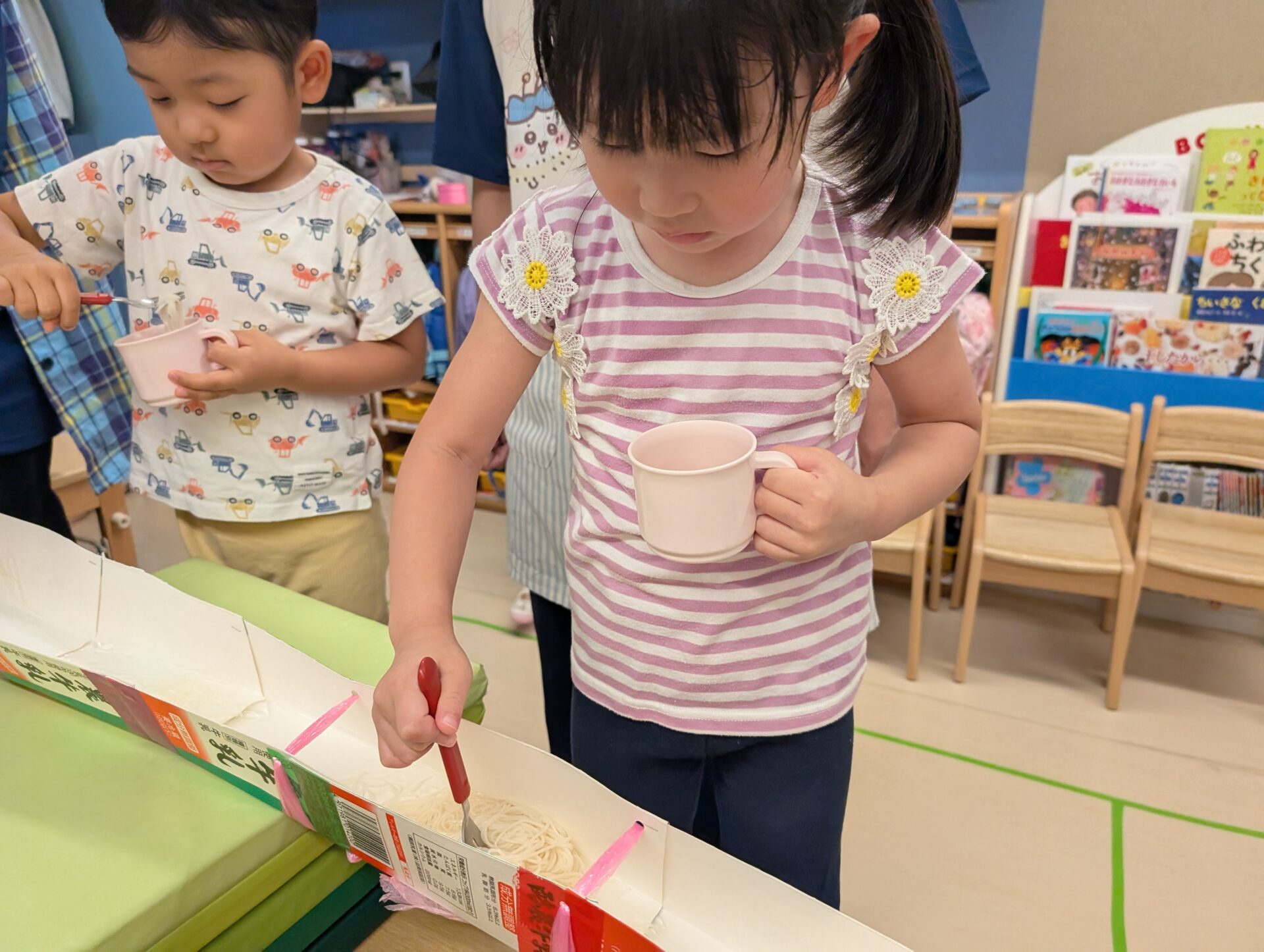 そうめんキャッチもとっても上手で、コップいっぱいにそうめんを集める子ども達。