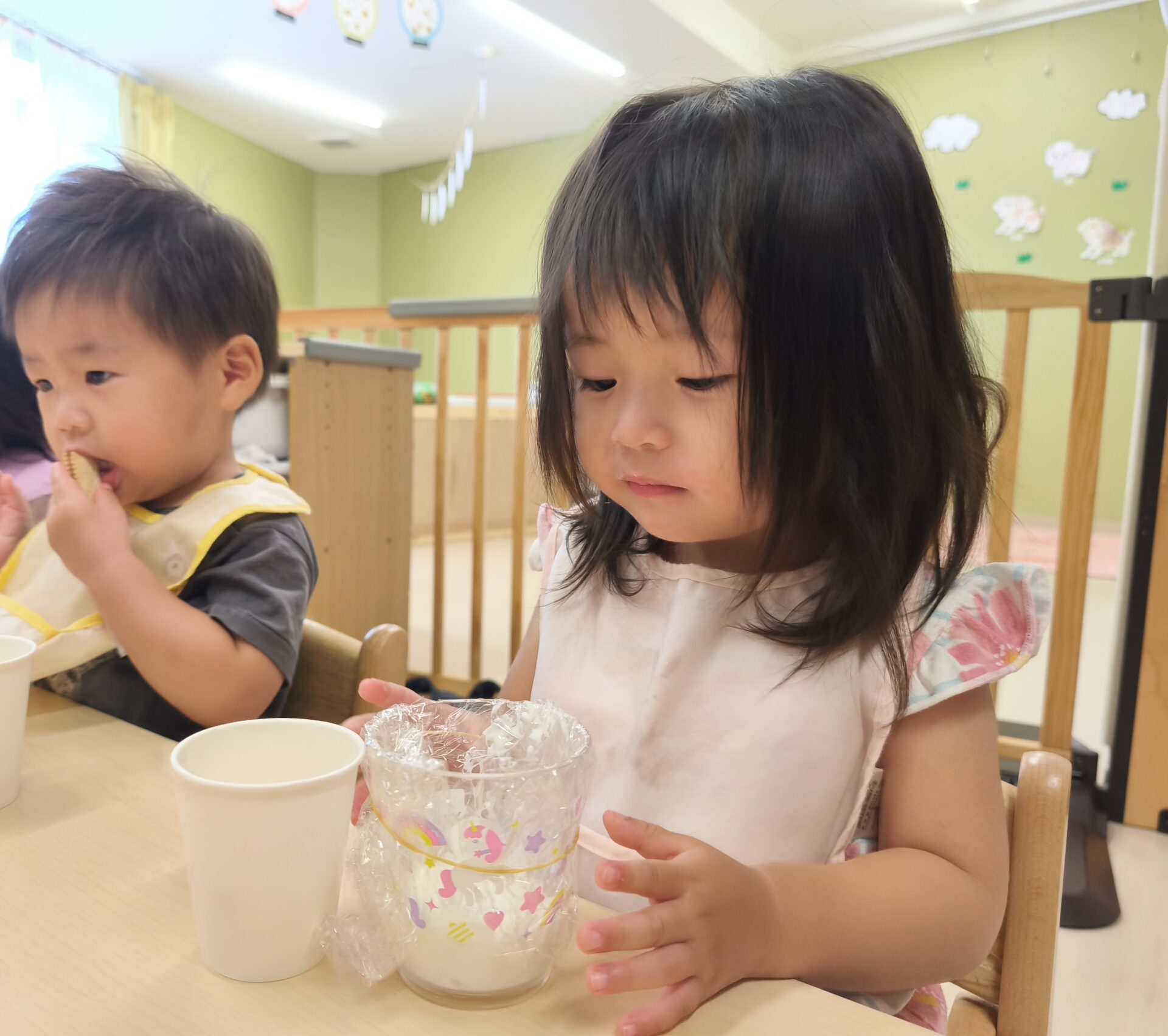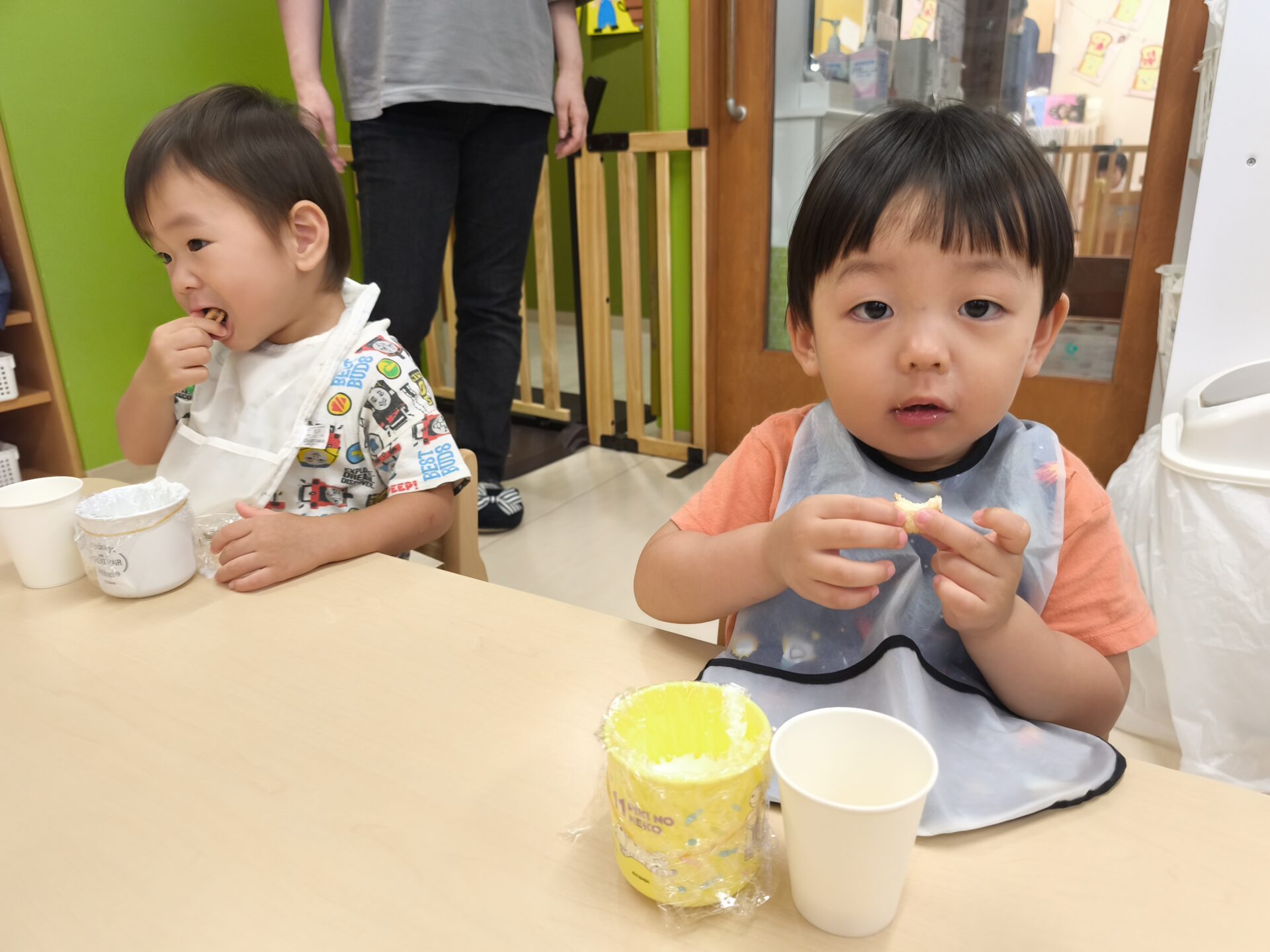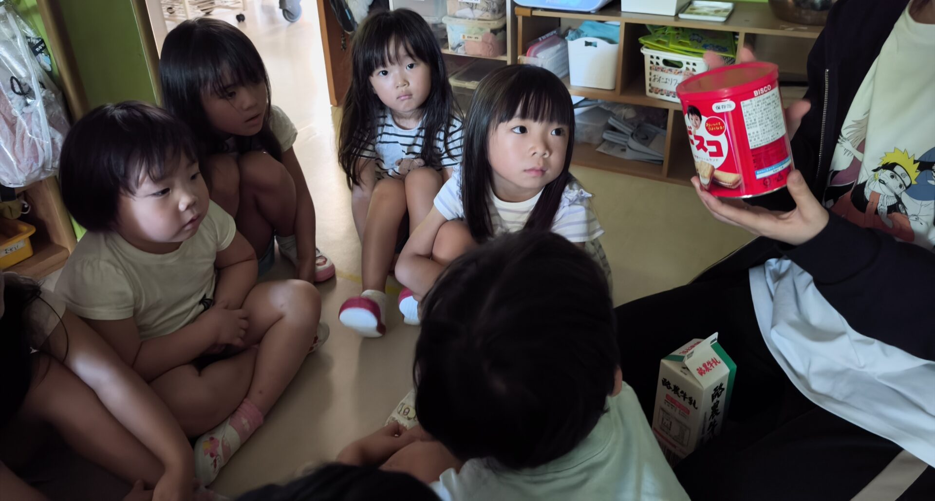 前年度は昼食時の非常食体験をしたので、今年はおやつの時間の非常食体験を実施しました。