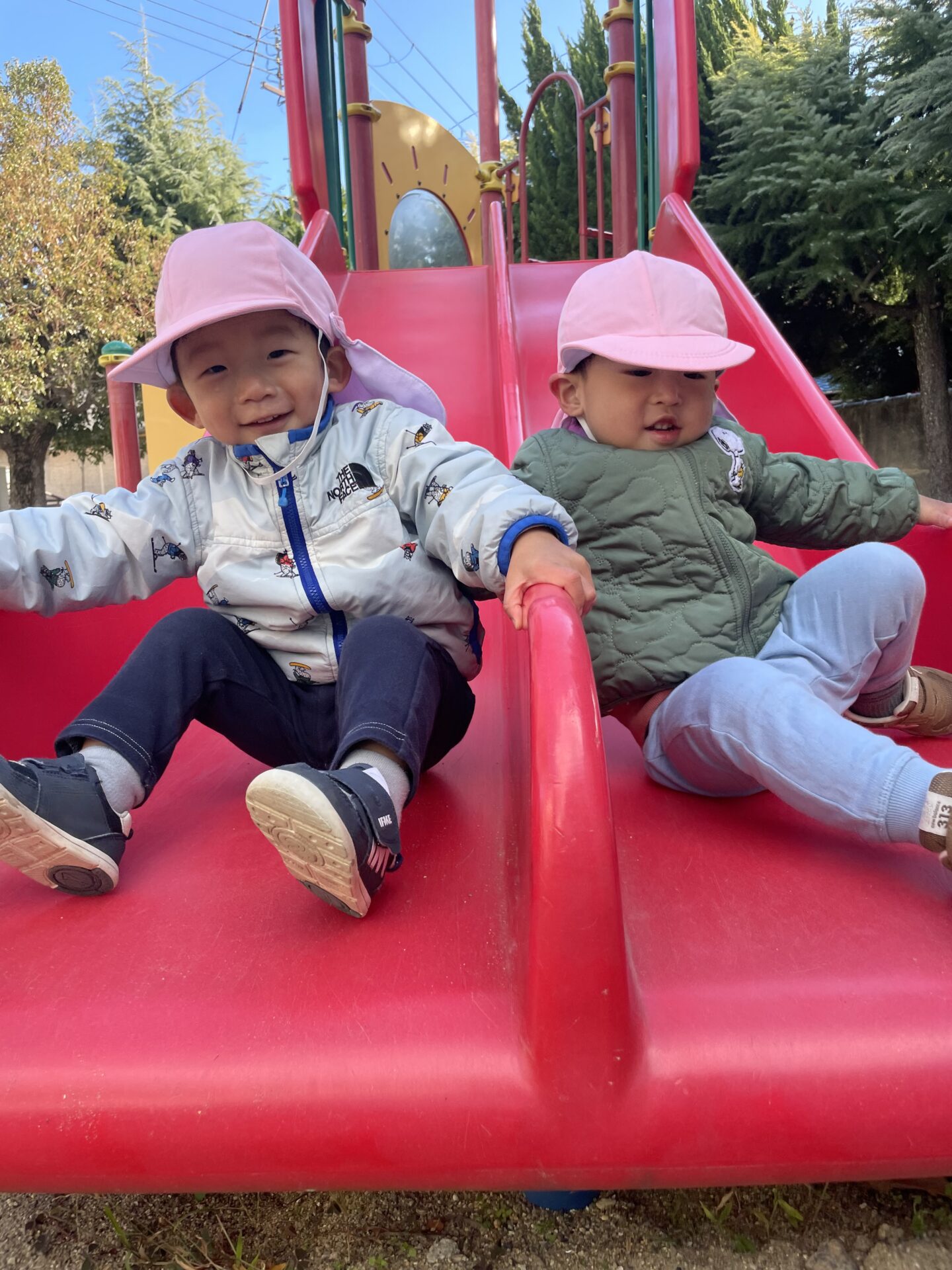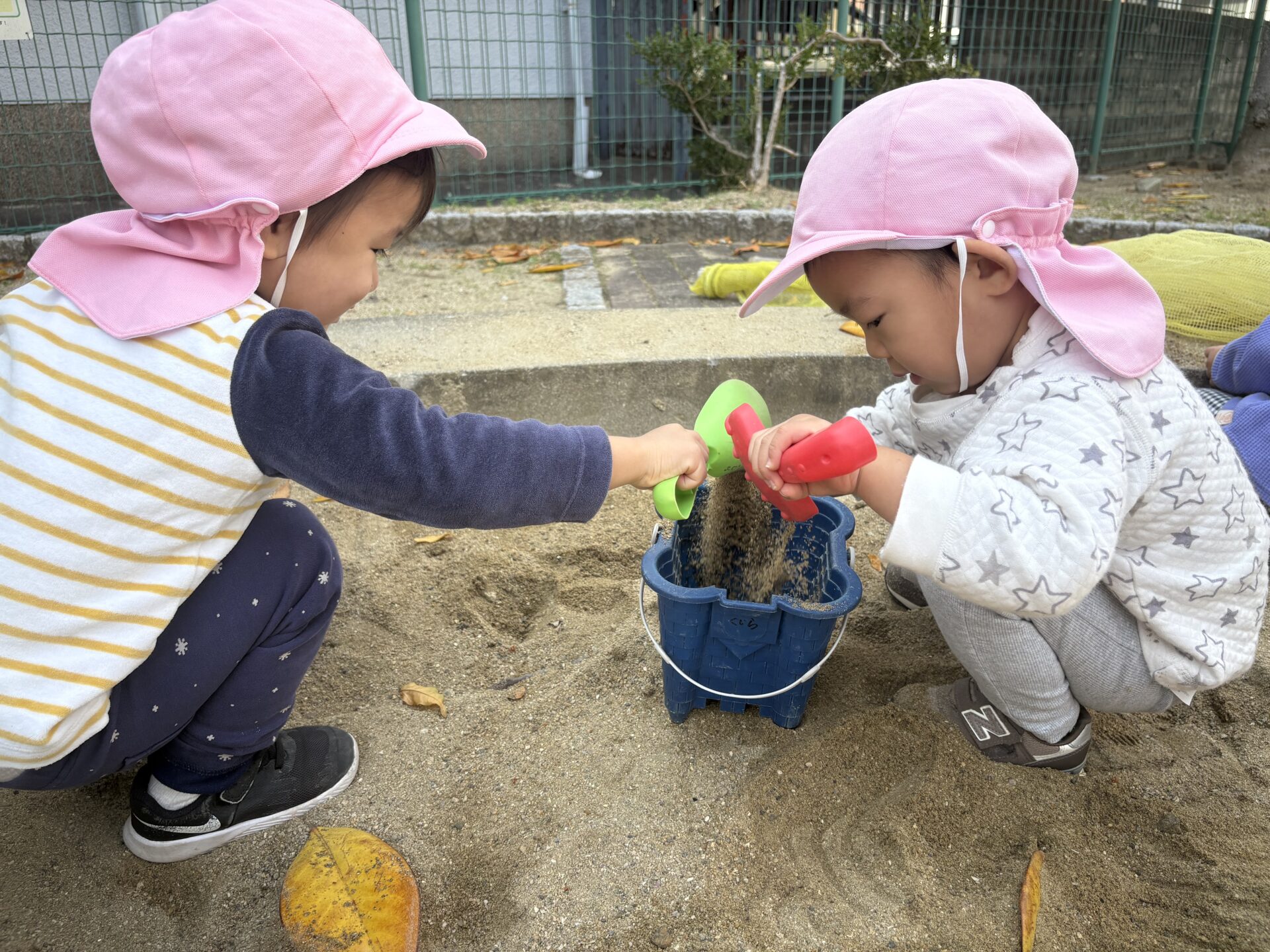 まだまだ「私の!」「僕の!」と玩具を引っ張り合う姿も見られますが、1つの物を分け合って遊ぶ姿も見られるようになってきました✨