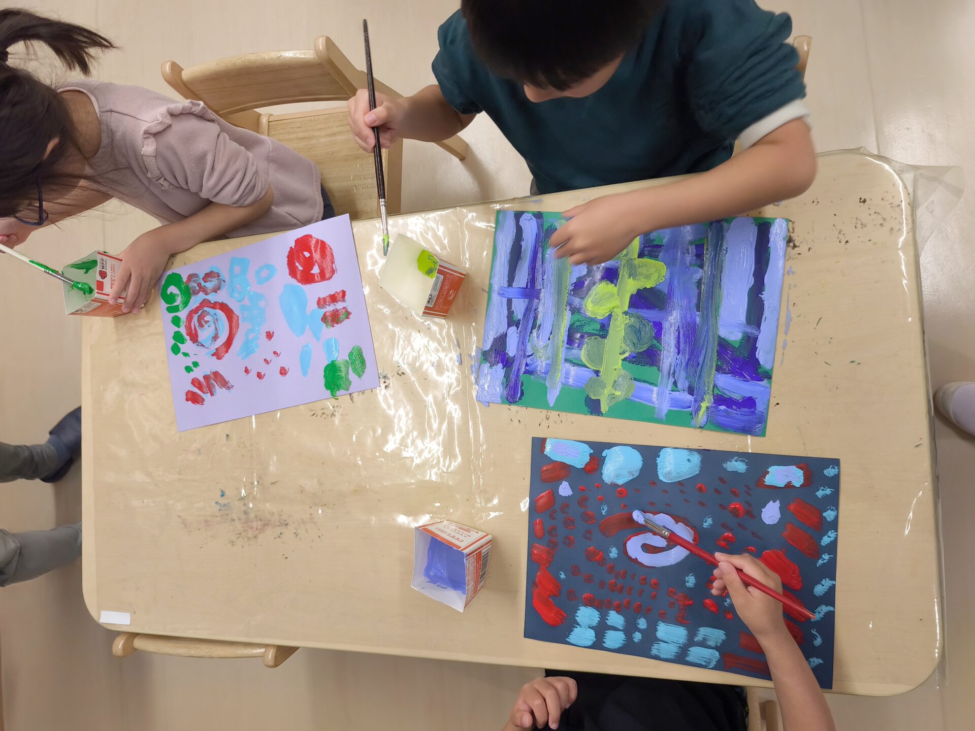 アート教室、楽しかったね!自分の描いた模様が素敵な作品になって子どもたちもにこにこでした♪