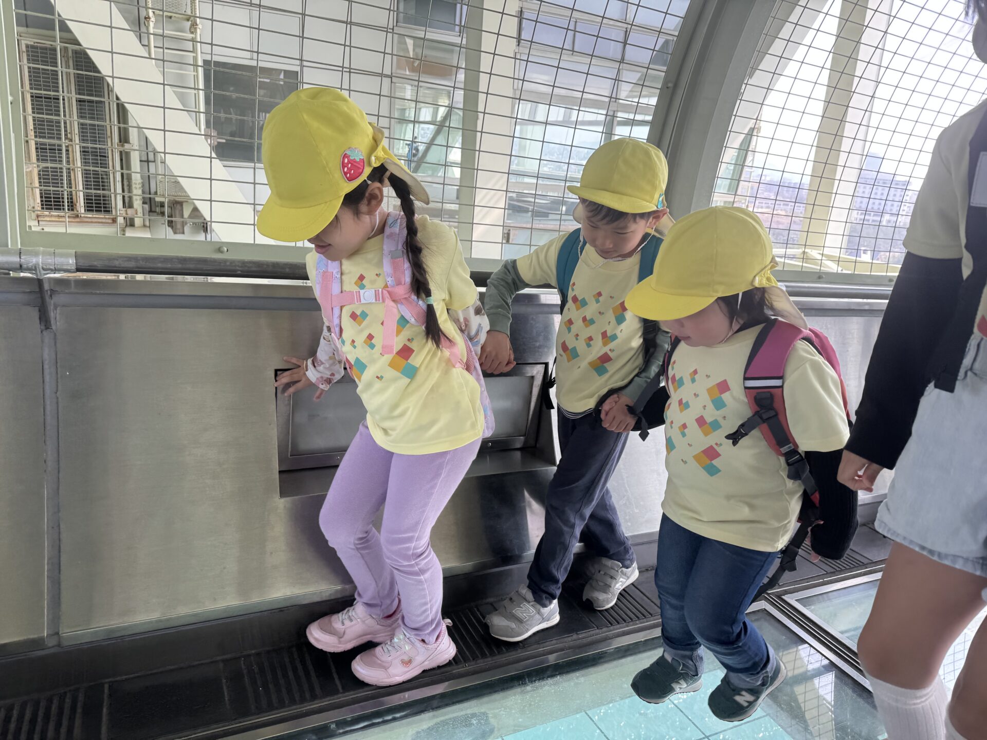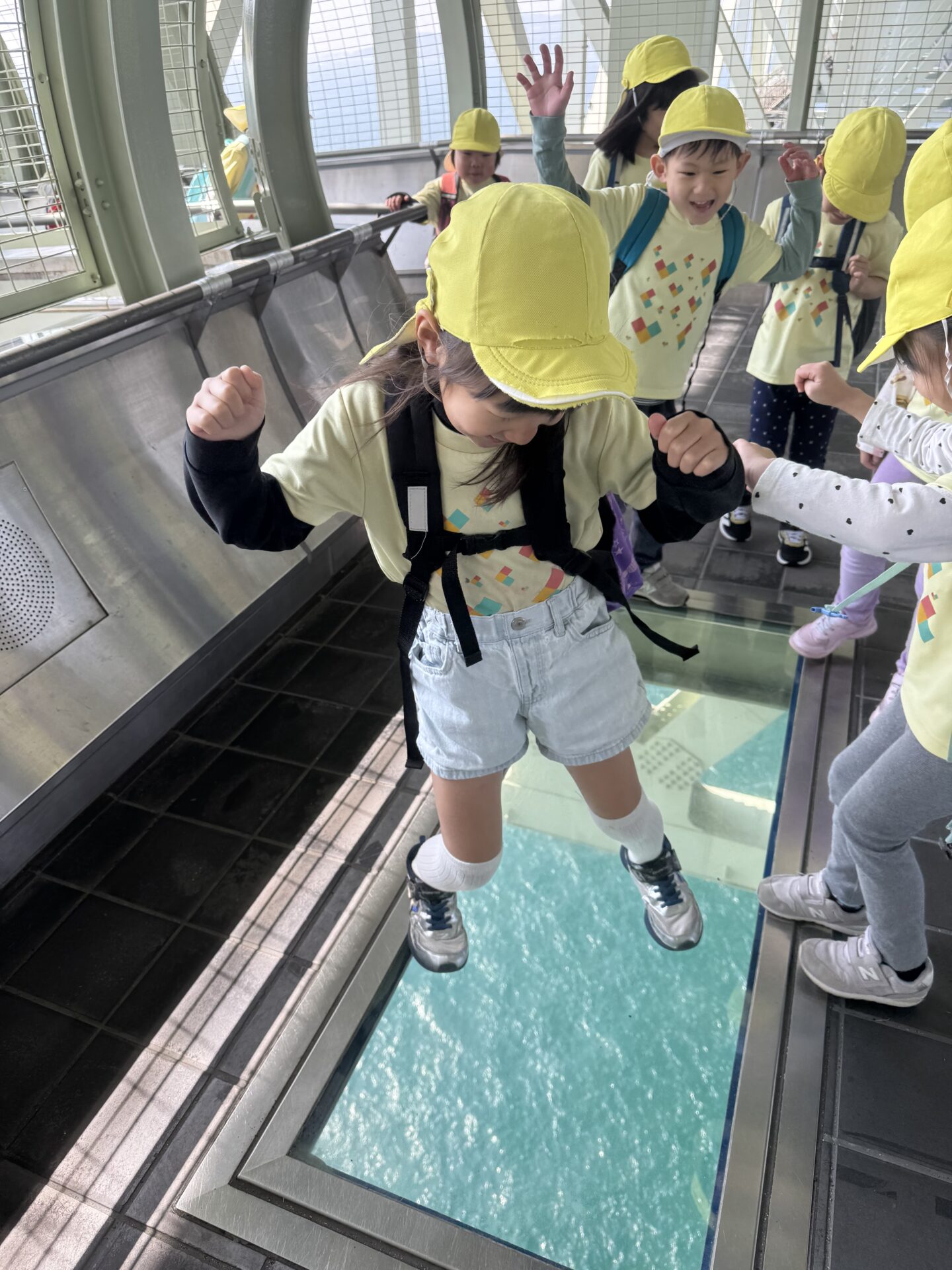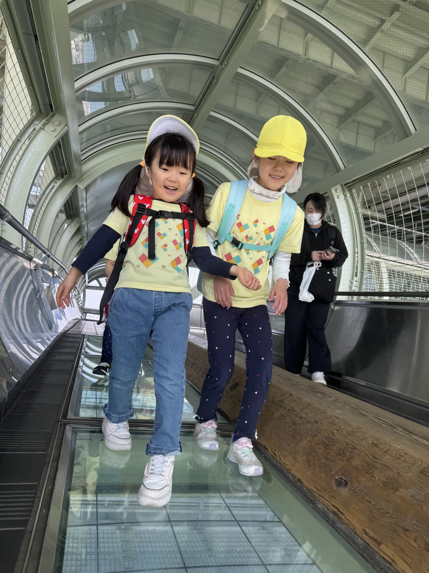 床がガラス張りになっていることに気が付くと、満面の笑みで何度もガラスの上に乗ってはそのスリルを楽しんでいました💓
