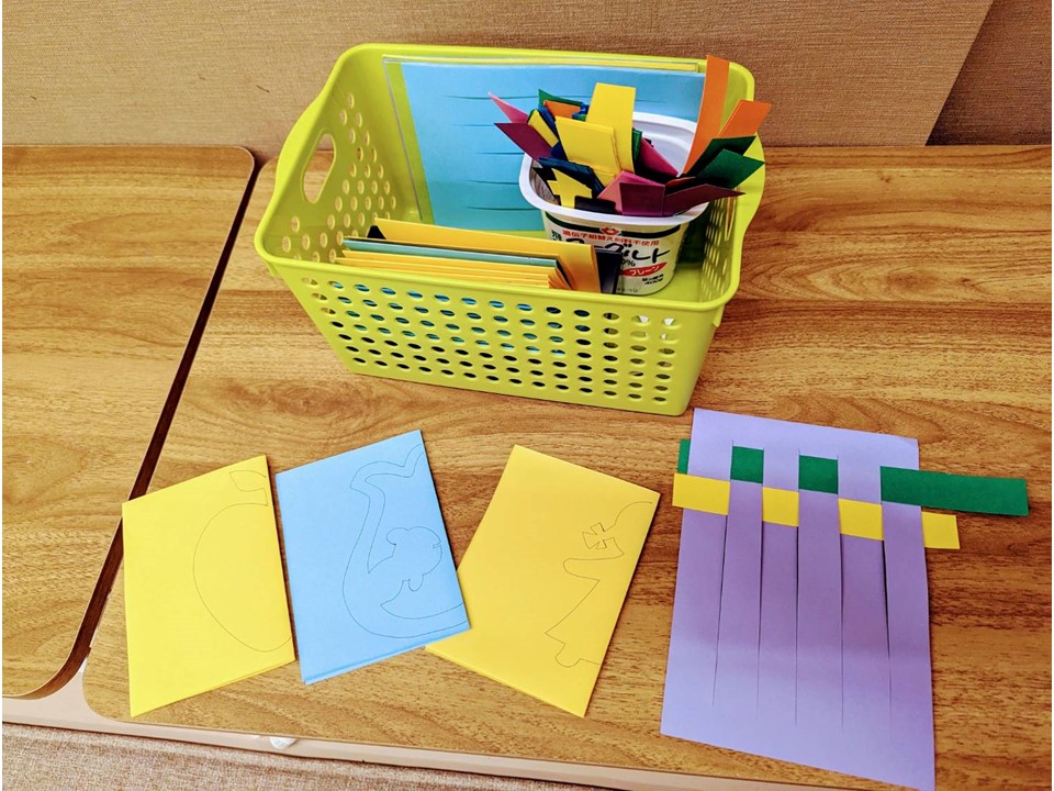 はさみを使って細かい切り絵や、難しい編み込み製作も普段の遊びの中で楽しみながら取り組んでいます。