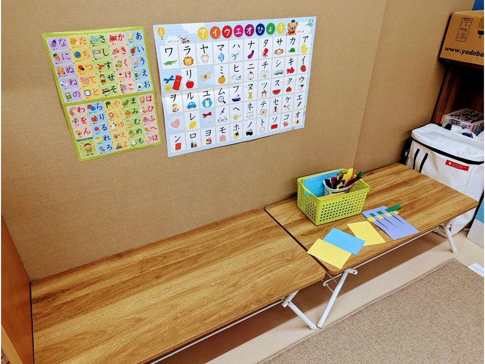 壁に向かって置いてある机は、少人数で集中して取り組めるようにしています。