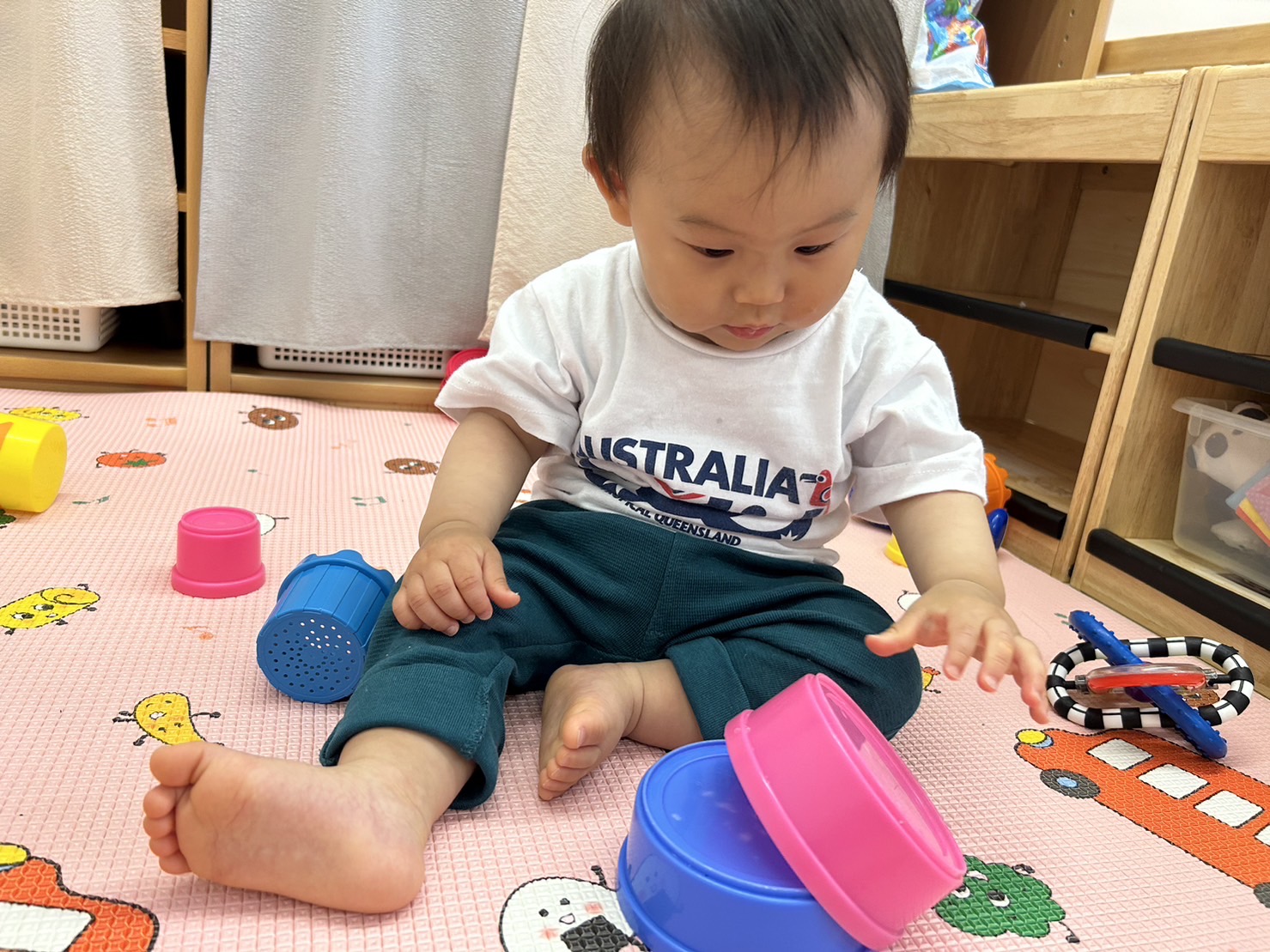 積んだり、重ねたり、色遊びだったりといろいろな遊びへと発展できますね👀
