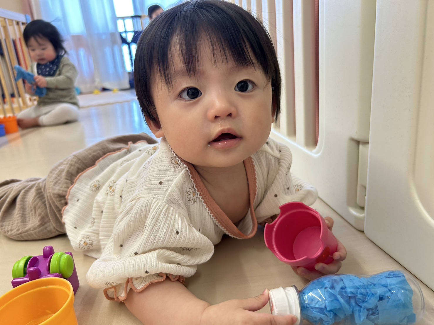 赤ちゃんが大好きな遊びといえば…いないいないば~!!玩具がなくてもすぐに遊べますね🤗