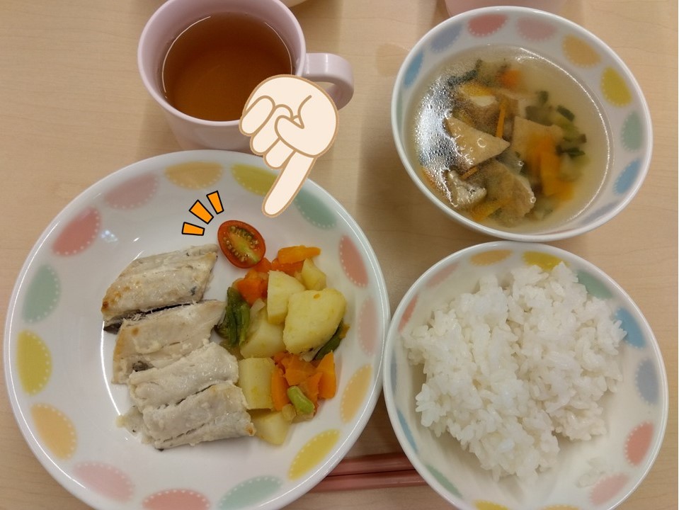 収穫したミニトマトは、調理さんに人数分にカットしてもらい、給食に出してもらいました。