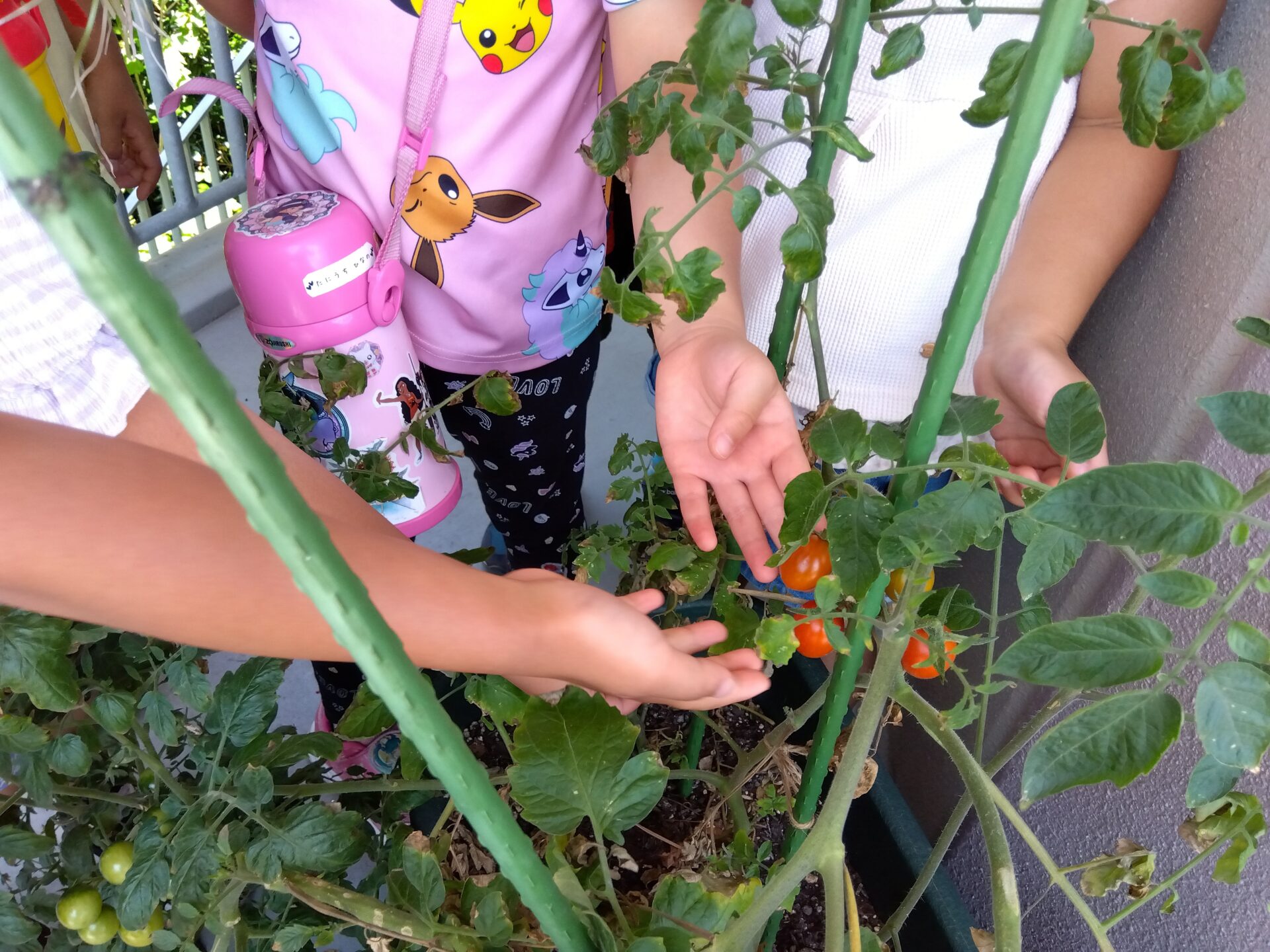 子どもたちもやっと赤くなったミニトマトを目の前に大興奮✨