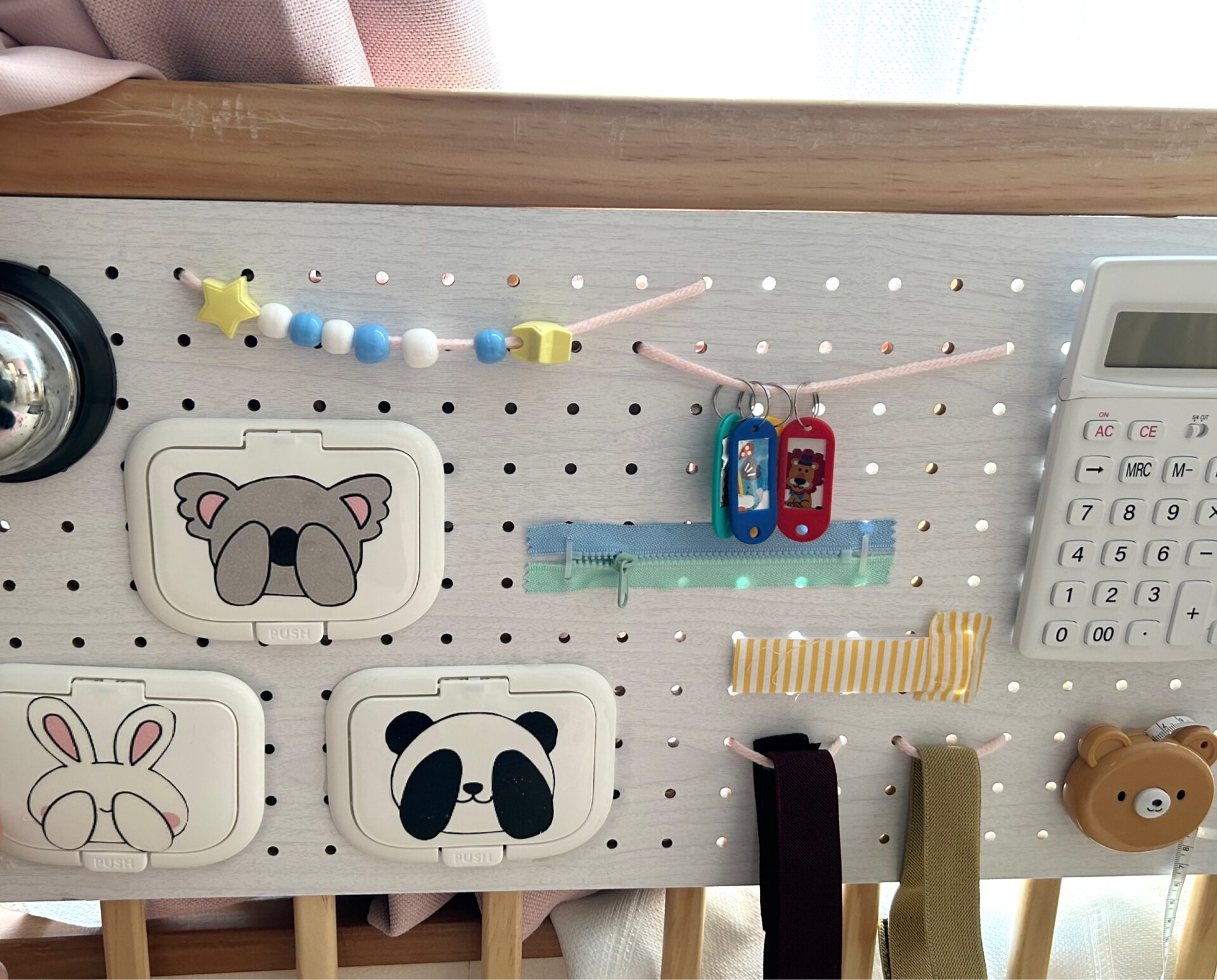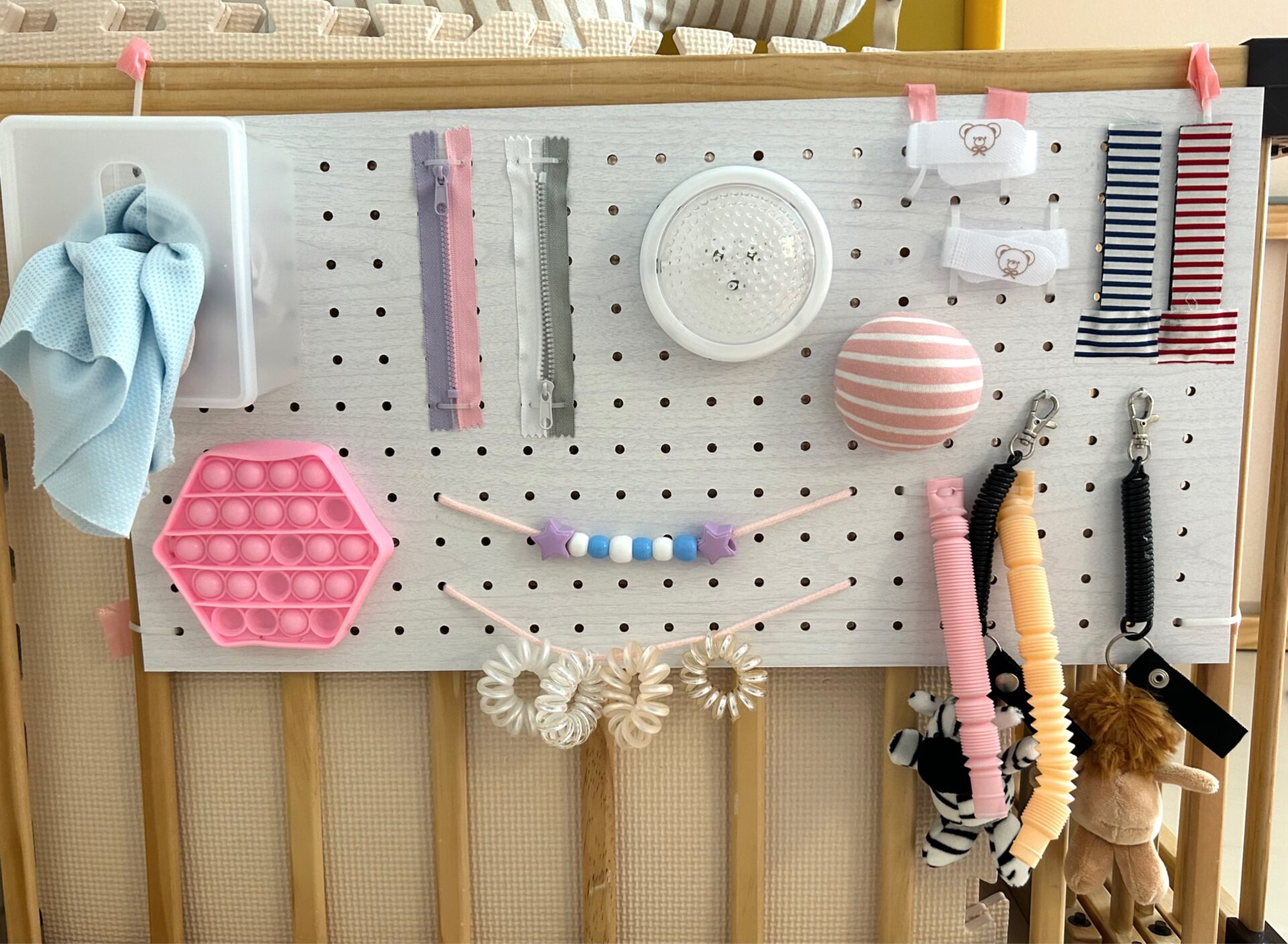 今回はうみ組(0歳児クラス)向けにビジーボードを作ってみました😊💕