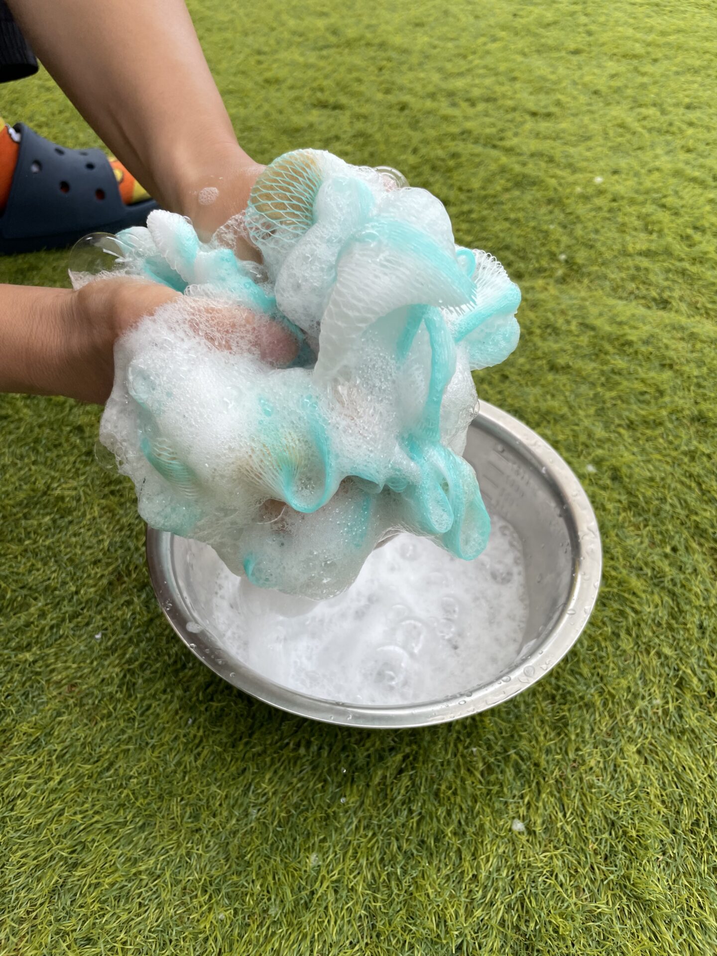 ③泡立った泡を泡立ちネットにつけて、もっともっと泡を作っていきます🫧