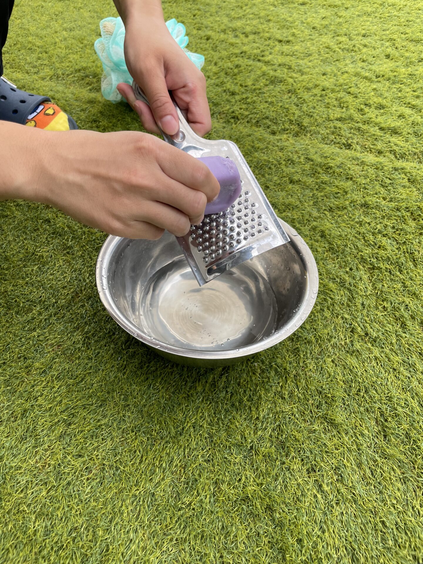 ①固形石鹸をおろし金で擦ります🧼