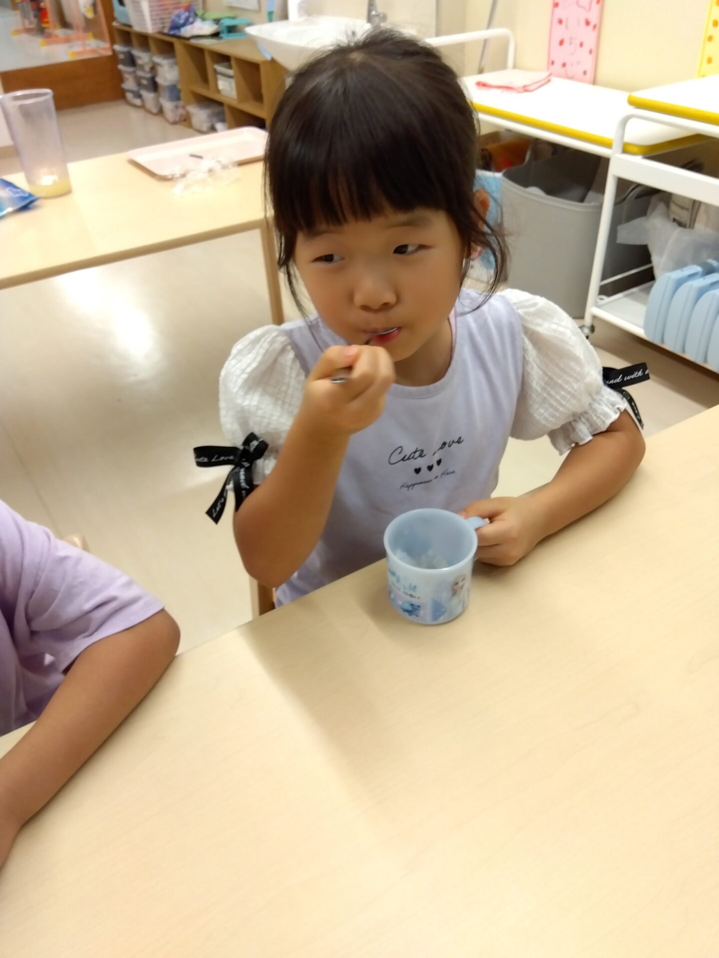 今日はいよいよそのレモンシロップをかけてかき氷を食べる日です!