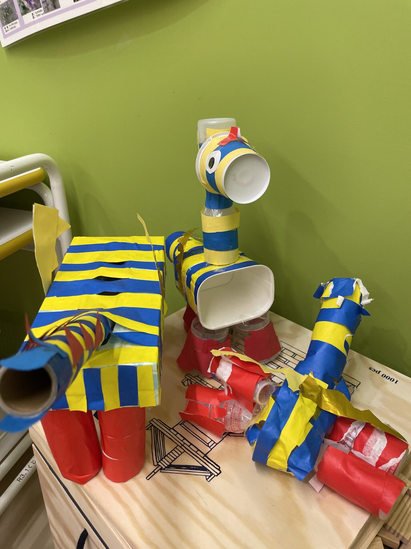 4歳児クラスでは「エルマーの冒険の竜」をイメージして廃材遊びが行われていました!