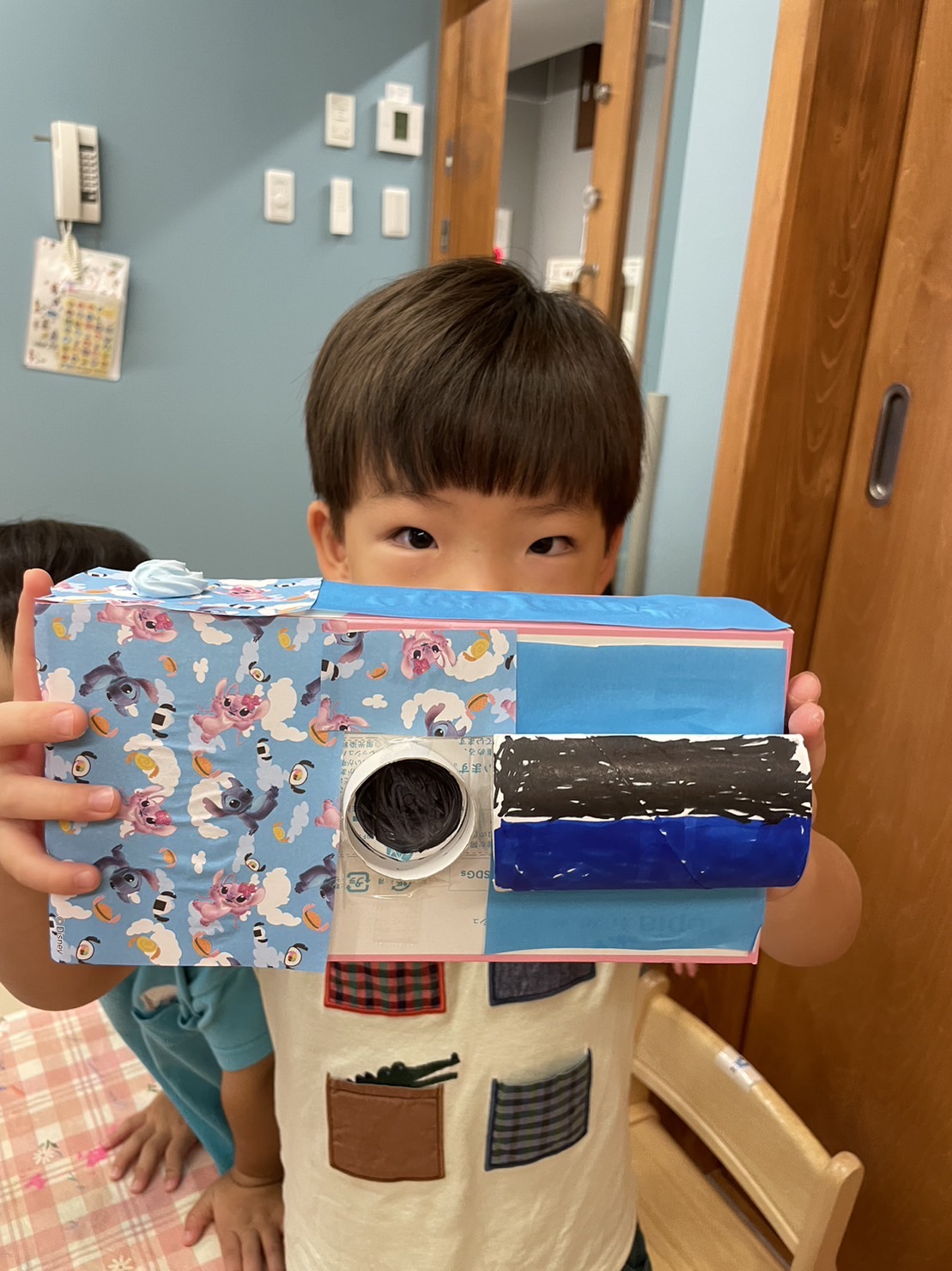 こちらは、ティッシュの箱やトイレットペーパーの芯を繋ぎ合わせてカメラを作ったようです📷