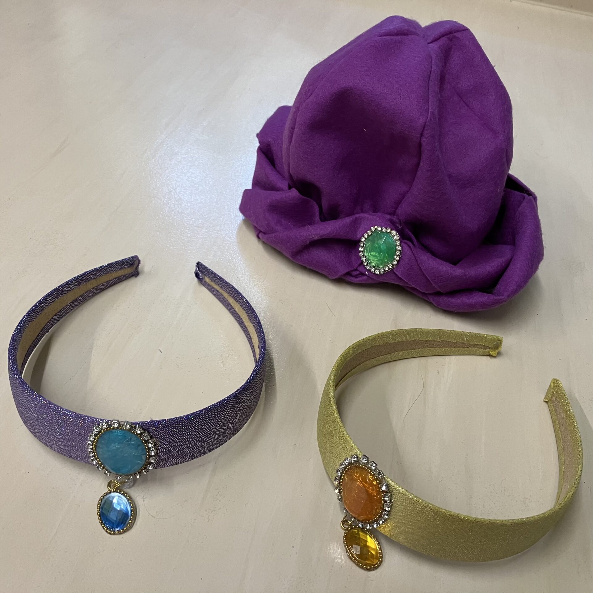 2024.01.19 お知らせ 発表会の小道具② 2023年度発表会の小道具を紹介します。 3歳児にじ組『おむすびころりん』金の小槌・大きなおむすび 4歳児そら組『アリババと40人の盗賊』宝箱・アラビア風衣装・ターバン 一覧へ戻る