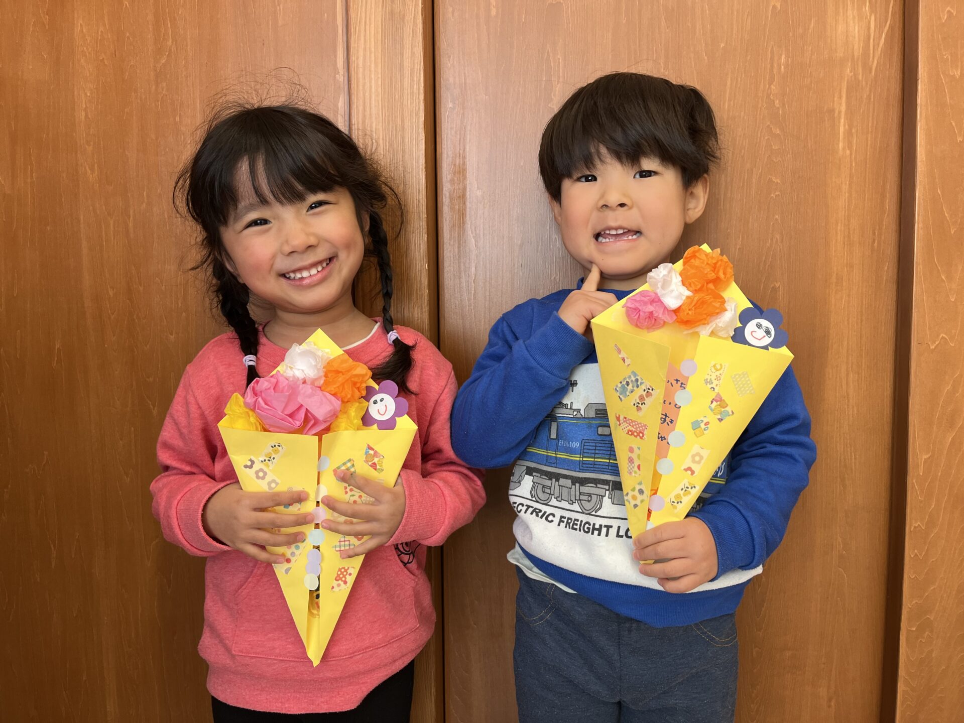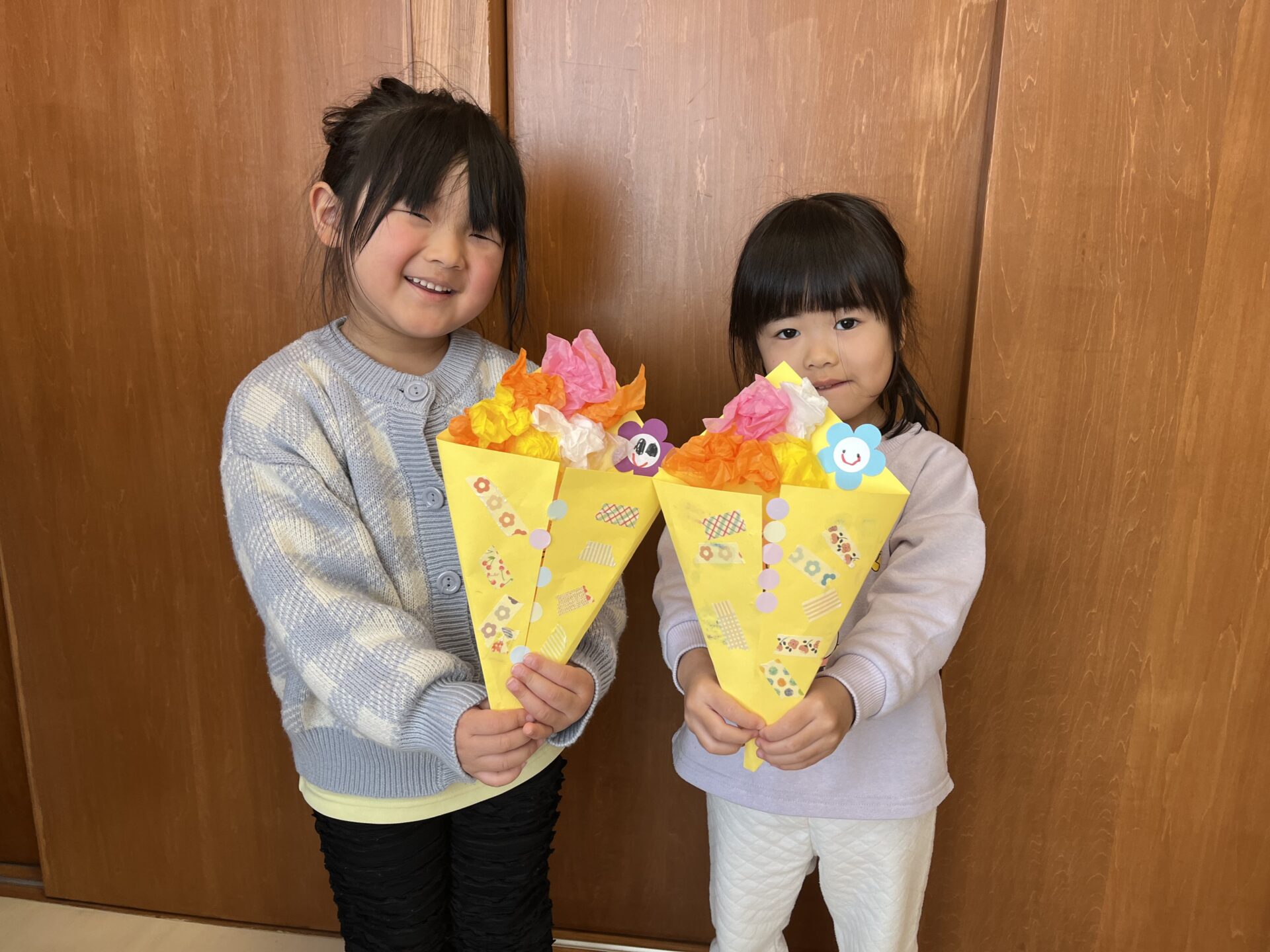 製作をすることが大好きなにじ組の子どもたちは出来ること、上手になったことが増えて本当に成長を感じます。1年間よく頑張りました💮