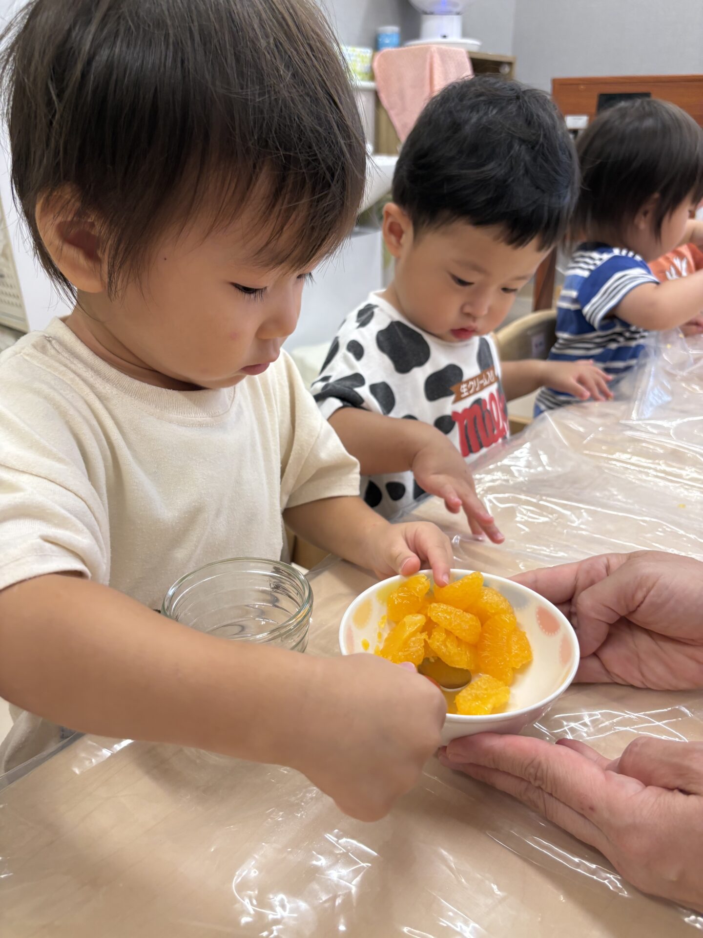 完成し皆で大喜びで食べていましたよ!!だいち組クッキング計画は大成功でした✨みかん缶が苦手な子どもも完食していて友だちと食事することや実際に作って食べてみることの大切さを感じました✨