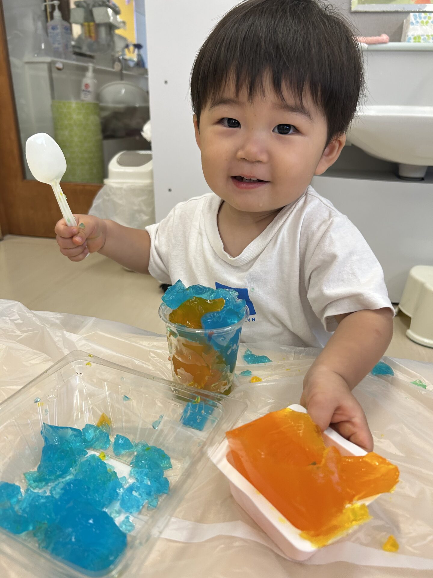 「ゼリーみたいだね」と言いながら見立て遊びを楽しみました。
