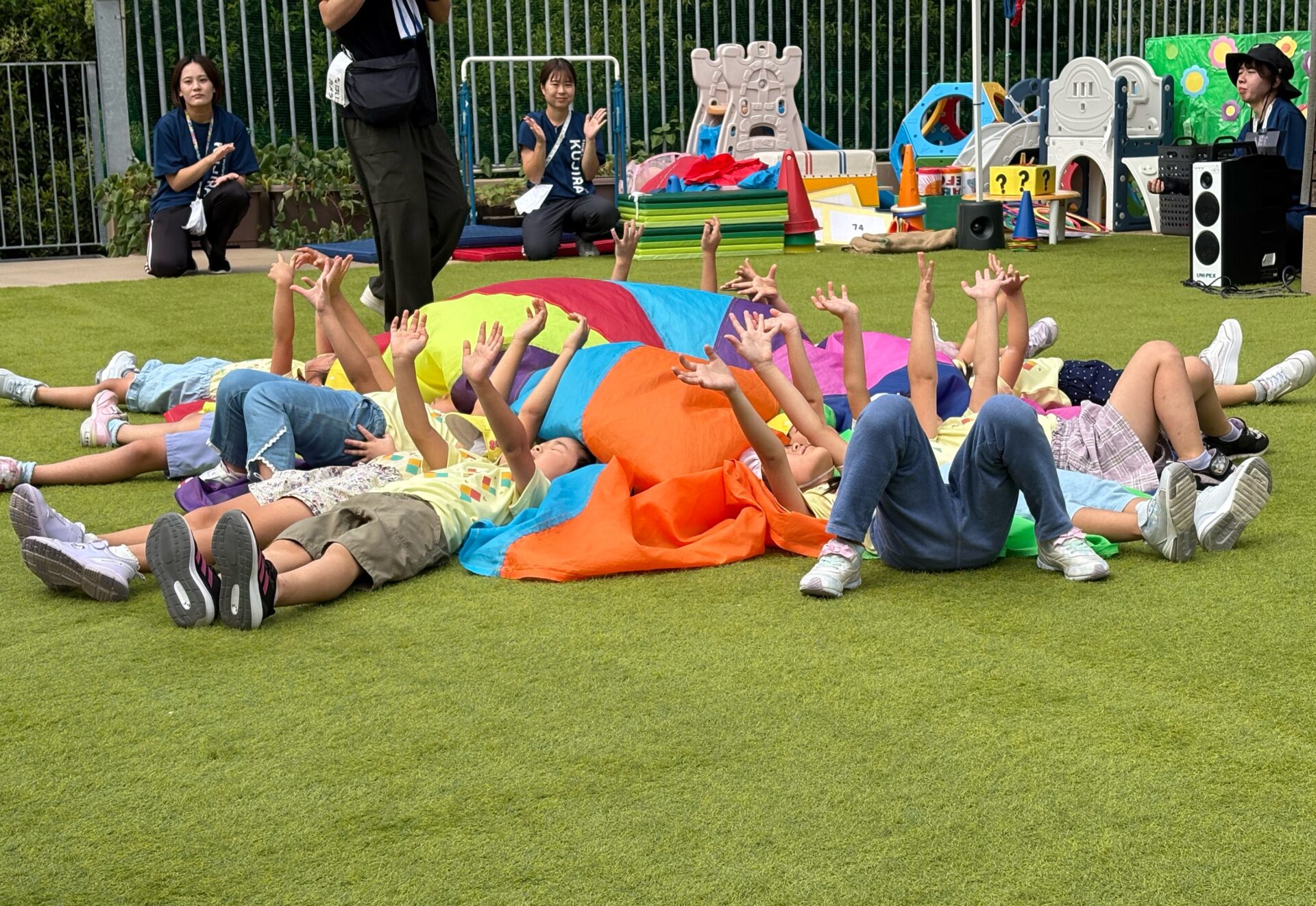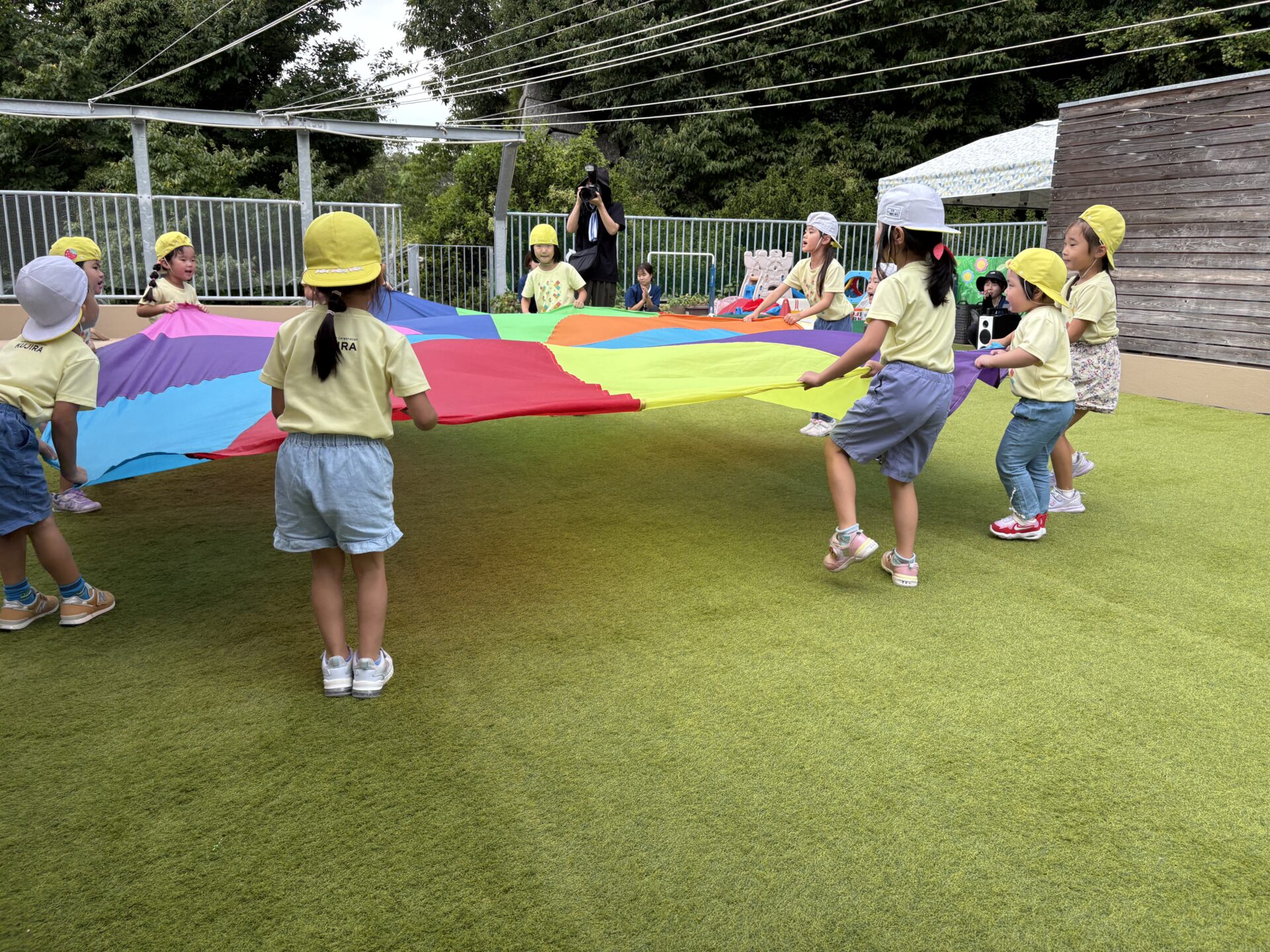 4歳児クラスになるとパラバルーンに挑戦できます。