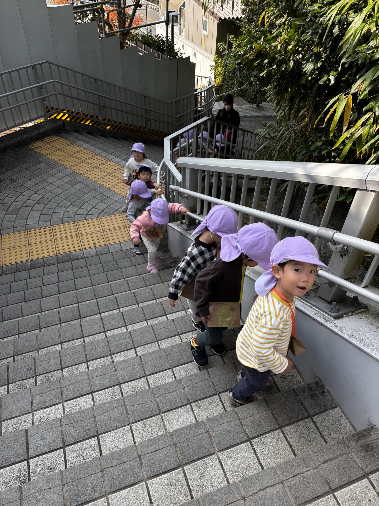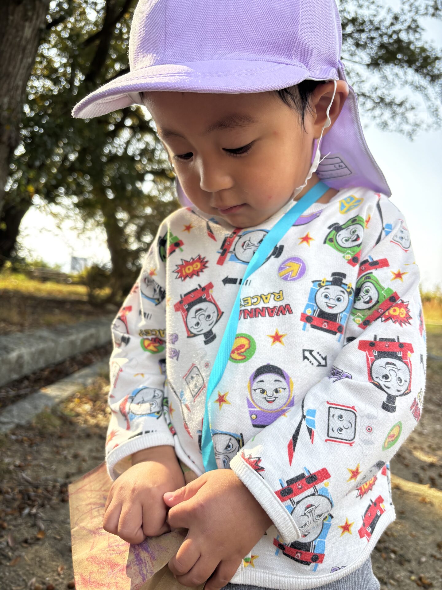 運動会も終わり、過ごしやすくなってきたので散歩に出かけることが多くなりました。明石公園の広場には、どんぐりや落ち葉がたくさん落ちていて夢中になっているあめぐみ。いつもは自然に返していますが、せっかくなのでおうちに持って帰れるようににみんなでお散歩バッグを作りました☆