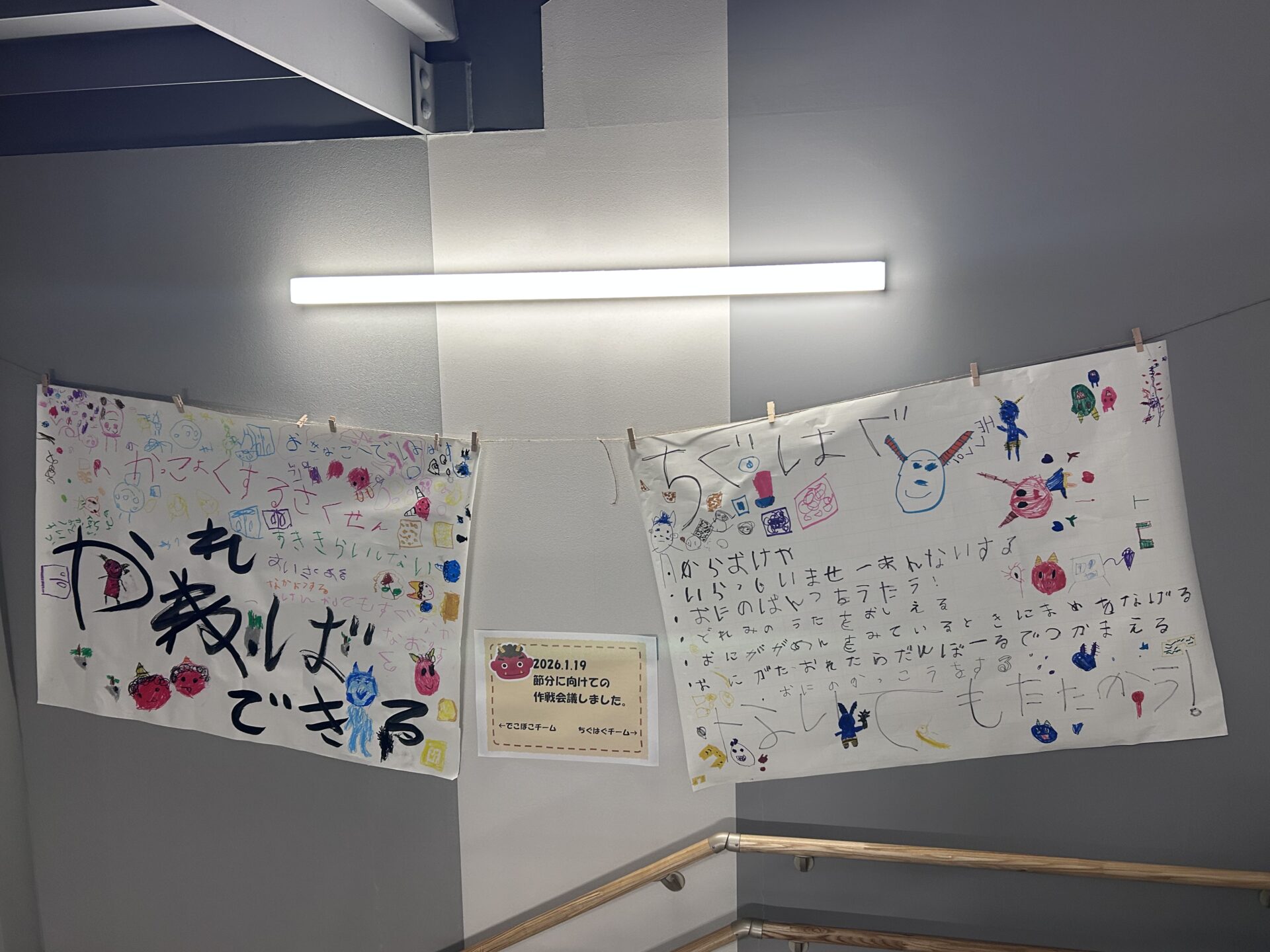 ②1月19日 ちぐはぐ・でこぼこチームは作戦会議をし、鬼をどうやっつけるか対策を話し合いました。