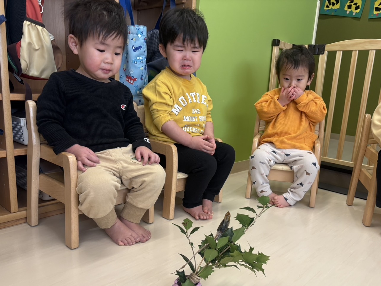 ③2月2日当日 朝、給食さんに焼いてもらったイワシの匂いをみんなで嗅いでみました🐟