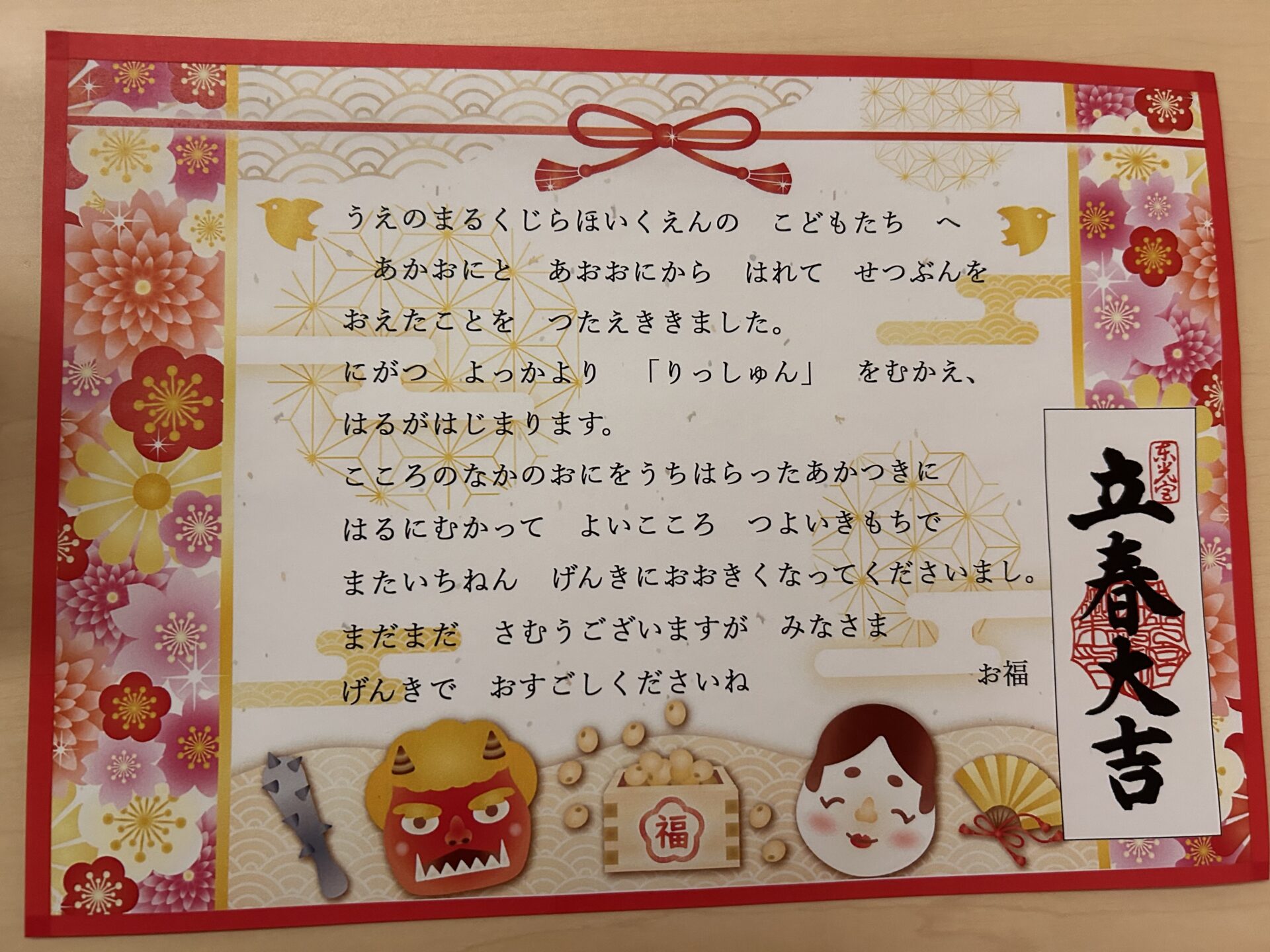無事立春を迎え、勇気を出した子どもたちの事を聞いて、喜んだお福からお手紙が届きました🌸
