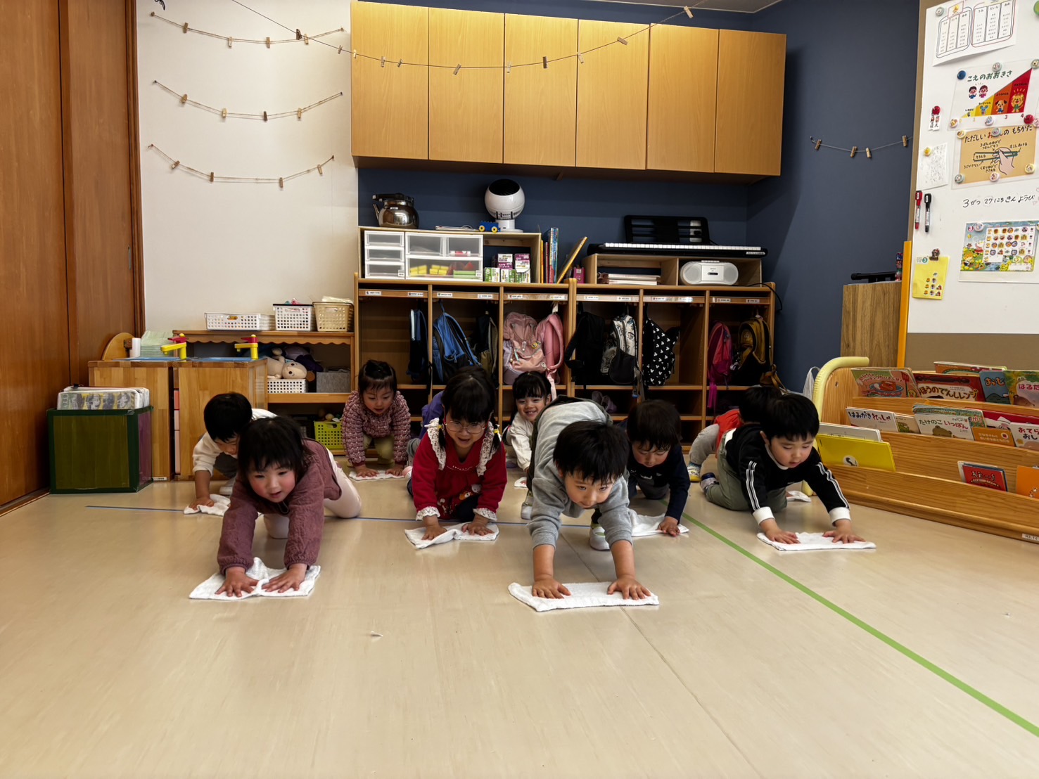 あめ組最後の日には、みんなで感謝の気持ちを込めて、お部屋の大掃除もしました!